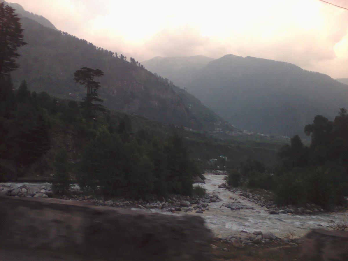 From Manikaran, I took a bus to Bhuntar, and from Bhuntar changed another bus for Manali. It was a four hour journey. The weather was overcast and the journey with river flowing on the side of the road extremely beautiful.